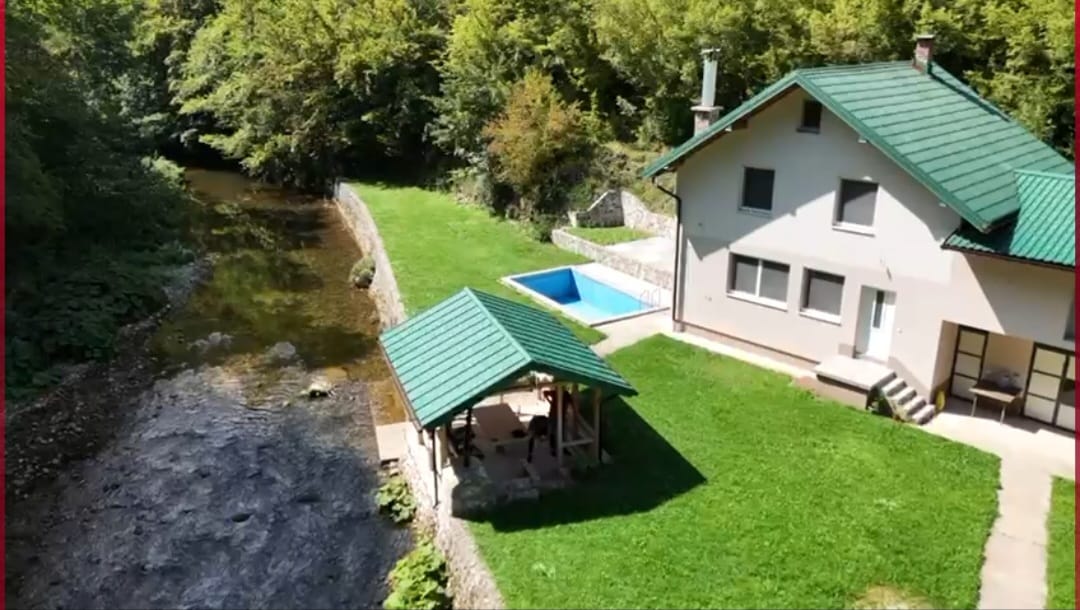 Discover a truly unique house in Sarajevo’s scenic Kijevo area, where modern comfort meets natural beauty. This charming property sits on a spacious 1,700 m² land, featuring a riverside location, and lush wooded surroundings, offering peace, privacy, and a perfect escape from city life. Just 20 minutes from Ilidža, it combines serene countryside living with easy access to urban amenities. Whether you’re seeking a family residence, a holiday retreat, or a smart investment, this property provides endless possibilities in a rare and picturesque setting.